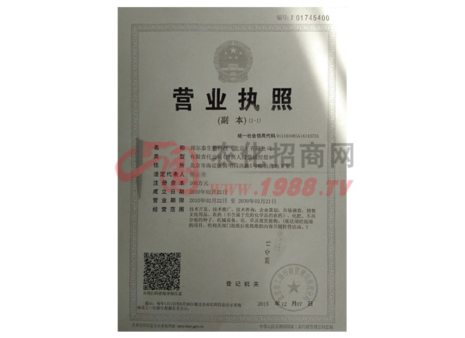 邦爾泰生物科技(北京)有限公司是農(nóng)業(yè)產(chǎn)業(yè)化標(biāo)準企業(yè)、北京市高新技術(shù)企業(yè),是LTD農(nóng)業(yè)技術(shù)轉(zhuǎn)化為生產(chǎn)力的定點單位。主要從事新型綠色環(huán)保農(nóng)藥、特色肥料的研發(fā)和推廣經(jīng)營。誠信才能長久,共享方能共贏,邦爾泰仁為天下農(nóng),秉承的信念是邦爾泰事業(yè)長青的基石!
