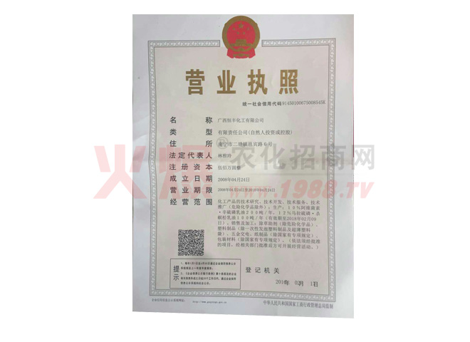 廣西恒豐化工有限公司(原廣西民族科學(xué)技術(shù)應(yīng)用研究所化工實(shí)驗(yàn)廠)坐落于廣西,是一家集科研、生產(chǎn)、銷售為一體的農(nóng)化企業(yè),公司以“專注農(nóng)化,以農(nóng)為需”為發(fā)展宗旨,希望通過先進(jìn)的科研水平和逐漸成熟的管理團(tuán)隊(duì),為廣大農(nóng)村地區(qū)提供質(zhì)量、價(jià)格實(shí)惠的農(nóng)化產(chǎn)品,立志打造成國內(nèi)的農(nóng)化生產(chǎn)企業(yè)。