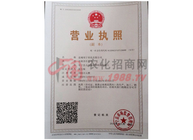 鹽城雙寧農(nóng)化有限公司,其前身是江蘇省阜寧縣農(nóng)藥廠,創(chuàng)建于1984年,系國家定點農(nóng)藥生產(chǎn)企業(yè),華東三省一市生產(chǎn)企業(yè)、江蘇省質(zhì)量信得過單位、五星級企業(yè)。